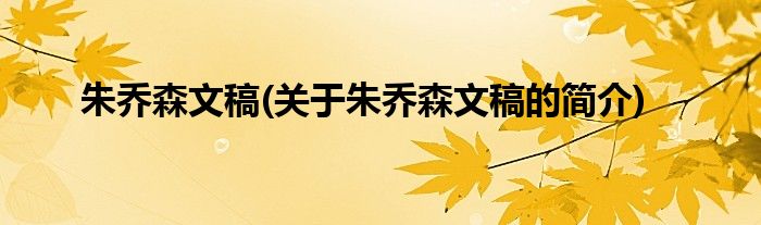 本文关于朱乔森文稿的简介就讲解完毕,希望对大家有所帮助。