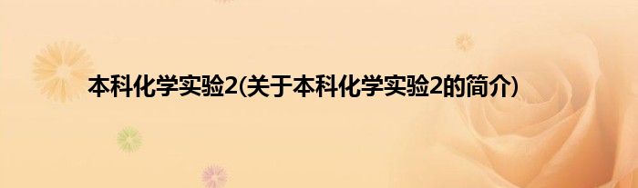 本文关于本科化学实验2的简介就讲解完毕,希望对大家有所帮助。
