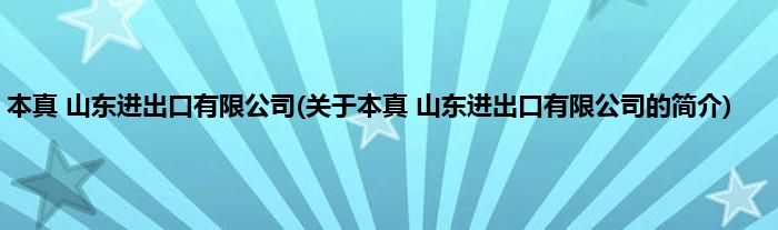 本文关于本真 山东进出口有限公司的简介就讲解完毕,希望对大家有所帮助。