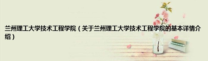 本文关于兰州理工大学技术工程学院的基本详情介绍就讲解完毕,希望对大家有所帮助。