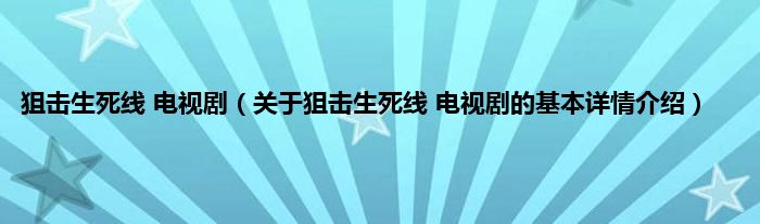 狙击生死线 电视剧(关于狙击生死线 电视剧的基本详情介绍)