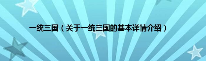 本文关于一统三国的基本详情介绍就讲解完毕,希望对大家有所帮助。