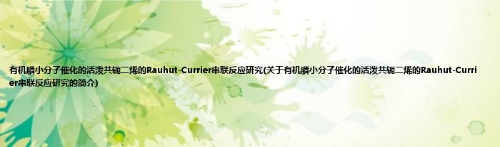 有机膦小分子催化的活泼共轭二烯的Rauhut-Currier串联反应研究(关于有机膦小分子催化的活泼共轭二烯的Rauhut-Currier串联反应研究的简介)
