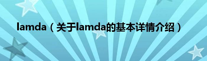 本文关于lamda的基本详情介绍就讲解完毕,希望对大家有所帮助。