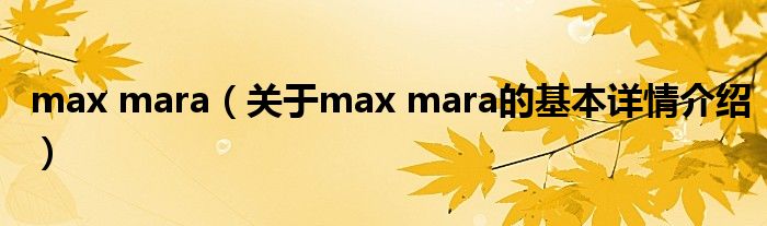 本文关于max mara的基本详情介绍就讲解完毕,希望对大家有所帮助。