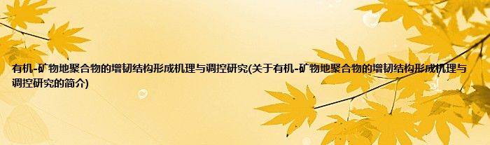 有机-矿物地聚合物的增韧结构形成机理与调控研究(关于有机-矿物地聚合物的增韧结构形成机理与调控研究的简介)