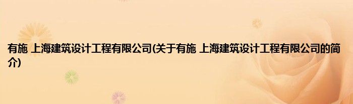 本文关于有施 上海建筑设计工程有限公司的简介就讲解完毕,希望对大家有所帮助。
