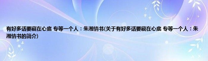 本文关于有好多话要藏在心底,专等一个人:朱湘情书的简介就讲解完毕,希望对大家有所帮助。