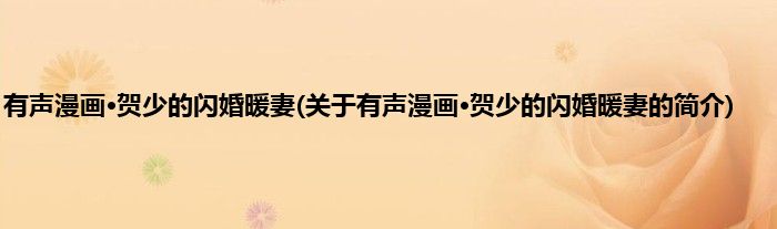本文关于有声漫画·贺少的闪婚暖妻的简介就讲解完毕,希望对大家有所帮助。