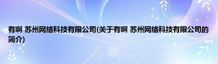 本文关于有啊 苏州网络科技有限公司的简介就讲解完毕,希望对大家有所帮助。