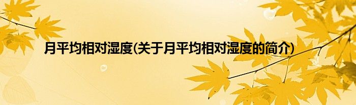 本文关于月平均相对湿度的简介就讲解完毕,希望对大家有所帮助。
