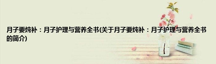 本文关于月子要炖补:月子护理与营养全书的简介就讲解完毕,希望对大家有所帮助。