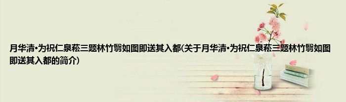 本文关于月华清·为祝仁泉菘三题林竹翳如图即送其入都的简介就讲解完毕,希望对大家有所帮助。
