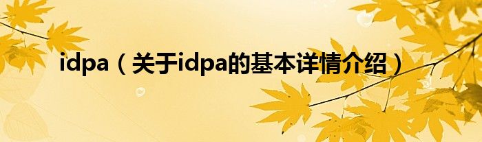 本文关于idpa的基本详情介绍就讲解完毕,希望对大家有所帮助。
