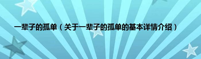 一辈子的孤单(关于一辈子的孤单的基本详情介绍)