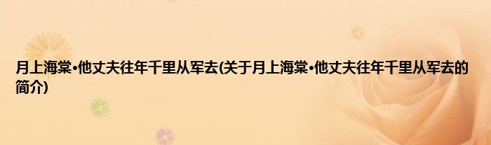 月上海棠·他丈夫往年千里从军去(关于月上海棠·他丈夫往年千里从军去的简介)