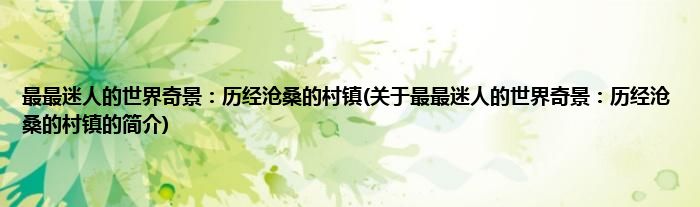 本文关于最最迷人的世界奇景:历经沧桑的村镇的简介就讲解完毕,希望对大家有所帮助。