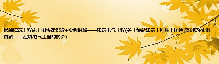 本文关于最新建筑工程施工图快速识读+实例讲解——建筑电气工程的简介就讲解完毕,希望对大家有所帮助。