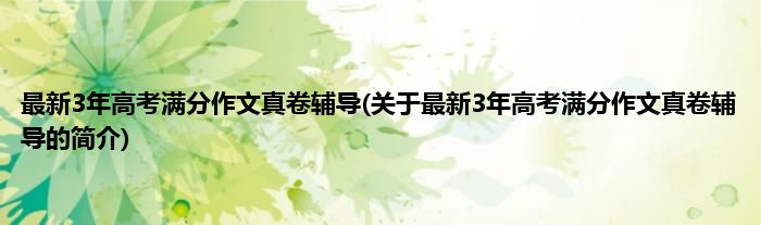 1、 《最新3年高考满分作文真卷辅导》是一本图书。