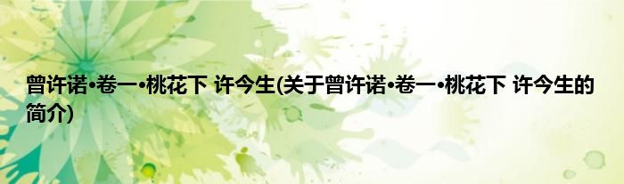 大家好,曾许诺·卷一·桃花下,许今生,关于曾许诺·卷一·桃花下,许今生的简介很多人还不知道,现在让我们一起来看看吧!