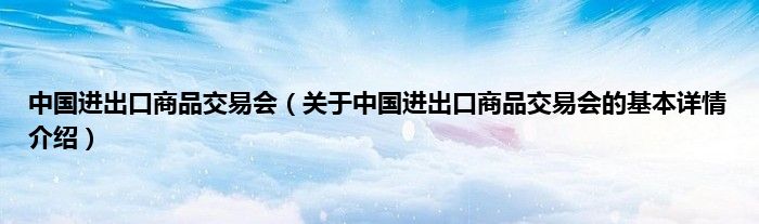 本文关于中国进出口商品交易会的基本详情介绍就讲解完毕,希望对大家有所帮助。