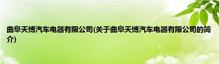 本文关于曲阜天博汽车电器有限公司的简介就讲解完毕,希望对大家有所帮助。