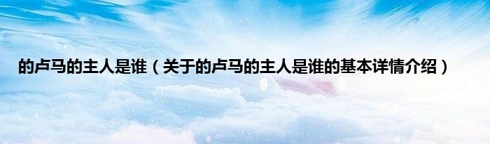大家好我是小蝌蚪,的卢马的主人是谁,关于的卢马的主人是谁的基本详情介绍很多人还不知道,那么现在让我们一起来看看吧!