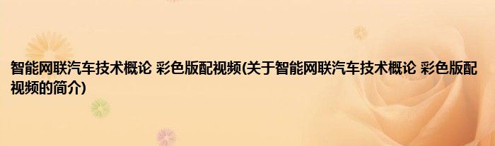 智能网联汽车技术概论彩色版配视频(关于智能网联汽车技术概论彩色版配视频的简介)