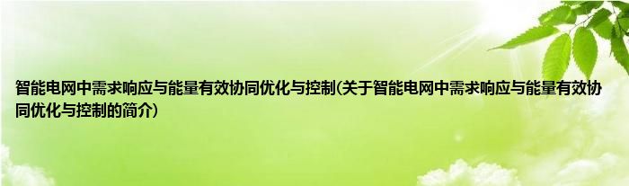 大家好,智能电网中需求响应与能量有效协同优化与控制,关于智能电网中需求响应与能量有效协同优化与控制的简介很多人还不知道,现在让我们一起来看看吧!