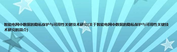 大家好,智能电网中数据的隐私保护与可用性关键技术研究,关于智能电网中数据的隐私保护与可用性关键技术研究的简介很多人还不知道,现在让我们一起来看看吧!