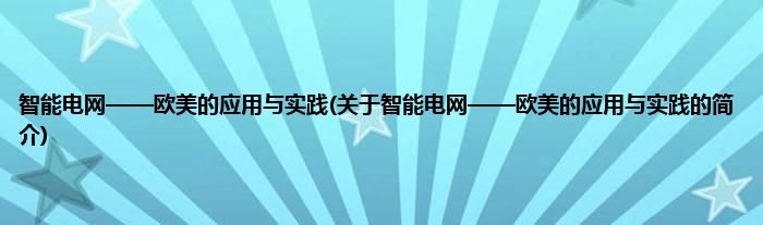 本文关于智能电网——欧美的应用与实践的简介就讲解完毕,希望对大家有所帮助。