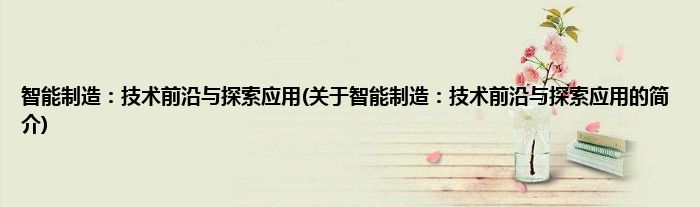 本文关于智能制造:技术前沿与探索应用的简介就讲解完毕,希望对大家有所帮助。