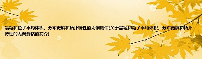 本文关于晶粒和粒子平均体积、分布宽度和拓扑特性的无偏测估的简介就讲解完毕,希望对大家有所帮助。
