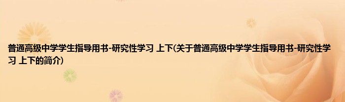 本文关于普通高级中学学生指导用书-研究性学习 上下的简介就讲解完毕,希望对大家有所帮助。