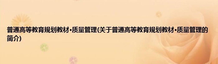 本文关于普通高等教育规划教材·质量管理的简介就讲解完毕,希望对大家有所帮助。