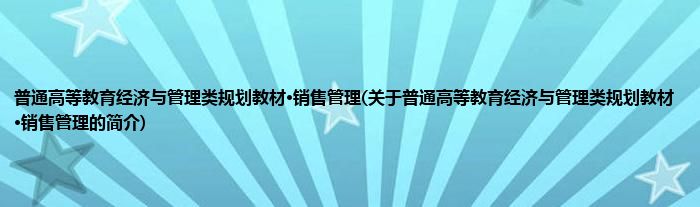 普通高等教育经济与管理类规划教材·销售管理(关于普通高等教育经济与管理类规划教材...