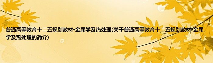 本文关于普通高等教育十二五规划教材·金属学及热处理的简介就讲解完毕,希望对大家有所帮助。