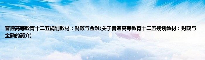 本文关于普通高等教育十二五规划教材:财政与金融的简介就讲解完毕,希望对大家有所帮助。
