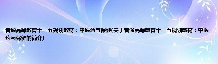 本文关于普通高等教育十一五规划教材:中医药与保健的简介就讲解完毕,希望对大家有所帮助。
