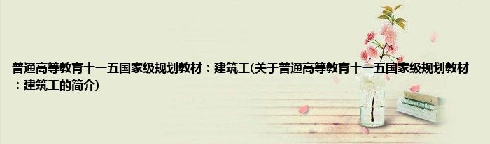 本文关于普通高等教育十一五国家级规划教材:建筑工的简介就讲解完毕,希望对大家有所帮助。