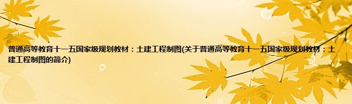1、 《普通高等教育十一五国家级规划教材:土建工程制图》是2007年高等教育出版社出版的图书。