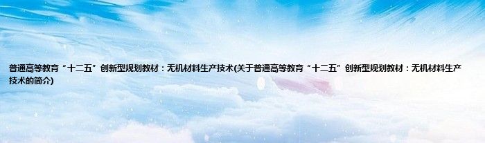 本文关于普通高等教育“十二五”创新型规划教材:无机材料生产技术的简介就讲解完毕,希望对大家有所帮助。