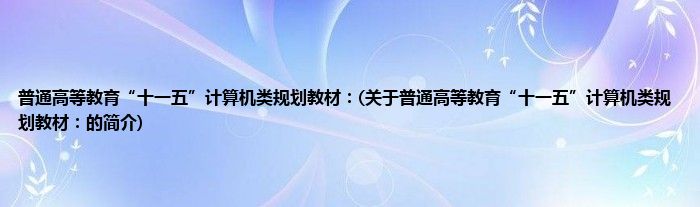 最佳答案大家好,普通高等教育“十一五”计算机类规划教材:,关于普通高等教育“十一五”计算机类规划教材:的简介很多人还不知道,现在让我们一起来看看吧! 1、 《普通高等教育“十一五”计算机类规划教材:》是2012年4月机械工业出版社出版的书籍。2、 。本文关于普通高等教育“十一五”计算机类规划教...