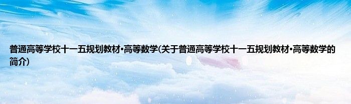 本文关于普通高等学校十一五规划教材·高等数学的简介就讲解完毕,希望对大家有所帮助。