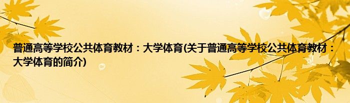 本文关于普通高等学校公共体育教材:大学体育的简介就讲解完毕,希望对大家有所帮助。