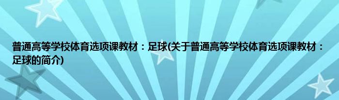 本文关于普通高等学校体育选项课教材:足球的简介就讲解完毕,希望对大家有所帮助。