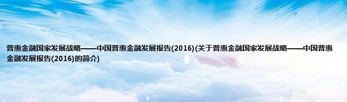 大家好,普惠金融国家发展战略——中国普惠金融发展报告,2016,关于普惠金融国家发展战略——中国普惠金融发展报告,2016的简介很多人还不知道,现在让我们一起来看看吧!