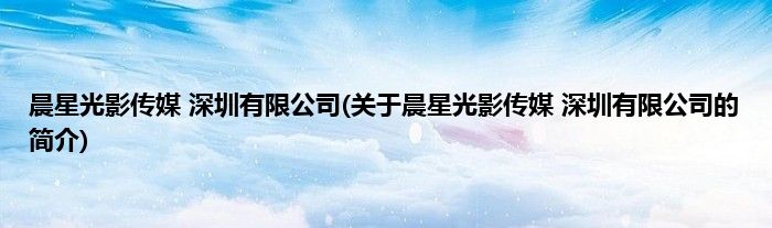 本文关于晨星光影传媒 深圳有限公司的简介就讲解完毕,希望对大家有所帮助。