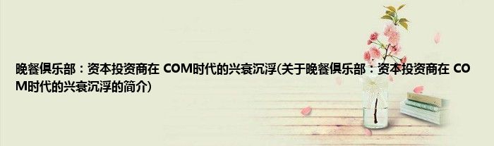 本文关于晚餐俱乐部:资本投资商在。COM时代的兴衰沉浮的简介就讲解完毕,希望对大家有所帮助。