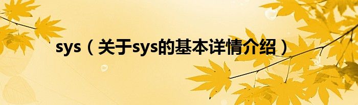 sys(关于sys的基本详情介绍)
